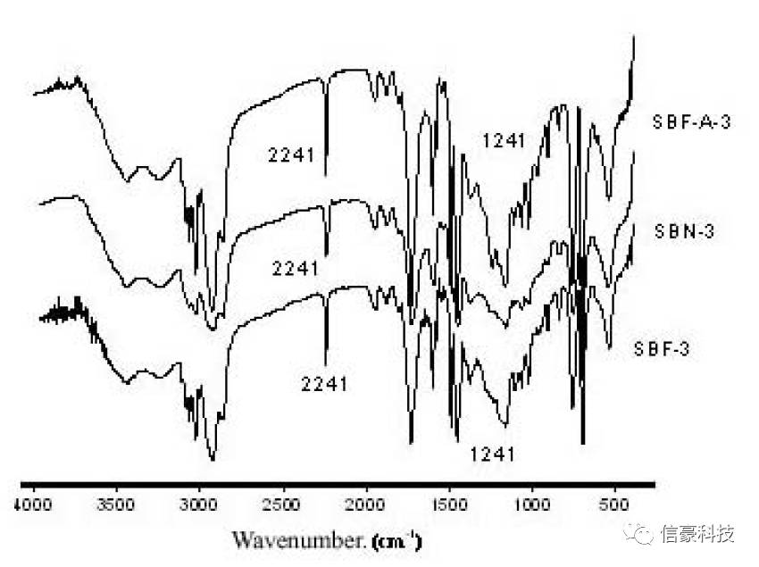 采用傅立葉變換紅外光譜以及13 C-NMR表征共聚乳液的化學結構。
